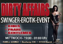 Mittwoch 18.12.2019 • 19:00 bis 01:00 Uhr Schmutzige Angelegenheiten in der Farell Lounge....! Ihr steht auf Dirty? Dirty Talk, Dirty Sex - einfach alles was schmutzig ist? Dann ist dies Eure Party! Die Party für Wifesharing- und-Cuckoldpaare, spielfreudigen Nymphomaninnen, abenteuerlustigen Paare und standhaften Herren. Lebt Eure schmutzigen Angelegenheiten in wirklich exklusiven Ambiente unter Gleichgesinnten aus, führt nette Gespräche, knüpft Kontakte, oder, oder..... Es sind bereits wieder einige Swinger-Paare und Solodamen angemeldet die den niveauvollen Herrenüberschuss lieben. Durchgehend Einlass ab 19:00 Uhr • Einfach vorbei kommen und dazu stoßen… Bei dieser Party werden keine Foto- oder Videoaufnahmen gemacht. Farell Lounge, Bruchweg 146, 41564 Kaarst Ausreichend diskrete Parkplätze • auch mit öffentlichen Verkehrsmitteln gut zu erreichen Preise Inklusive Partyteilnahme, Bier, Longdrinks, Softdrinks, Warm-kaltes Fingerfood Buffet, Snacks, Fruits & Sweets: Soloherren: 79,- • Solodamen: 15,- • Paare: 35,- Keine weiteren Kosten Nachlass VIP-Member 10,-